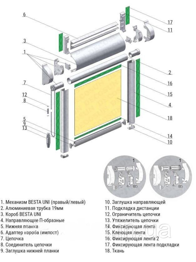 Управление: цепочное (дополнительно возможна моторизированное управление тканевым ролетом) !