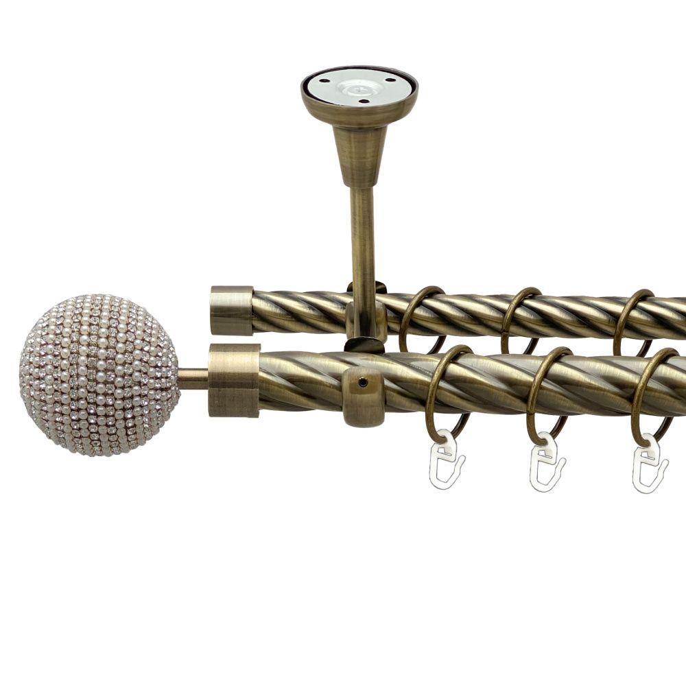 Карниз Orvit Карера металевий дворядний відкритий до стелі скручена труба кільце металеве Антик 25\19 мм 240 см (00-00021961)