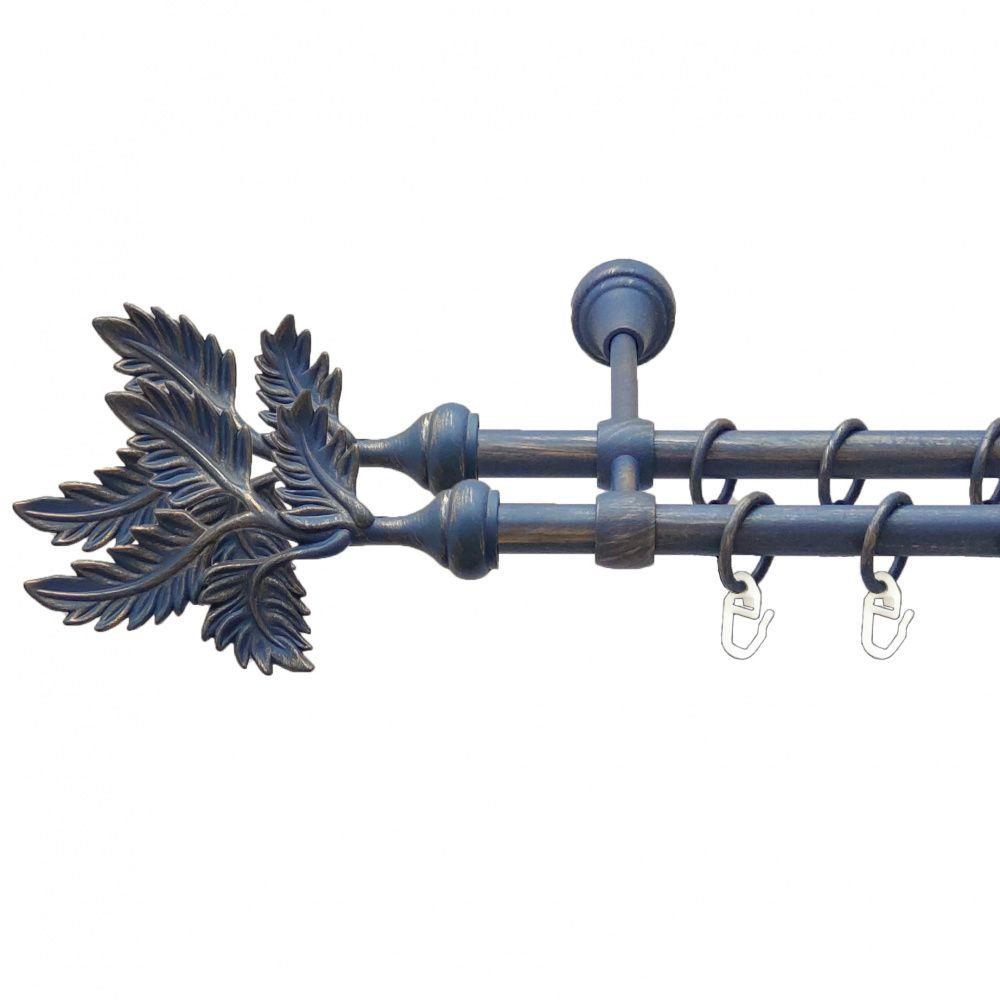 -20%Карниз Orvit Папороть металевий дворядний литий гладка труба кільце металеве Блакить Золота 16\16 мм 200 см (00-00009095)