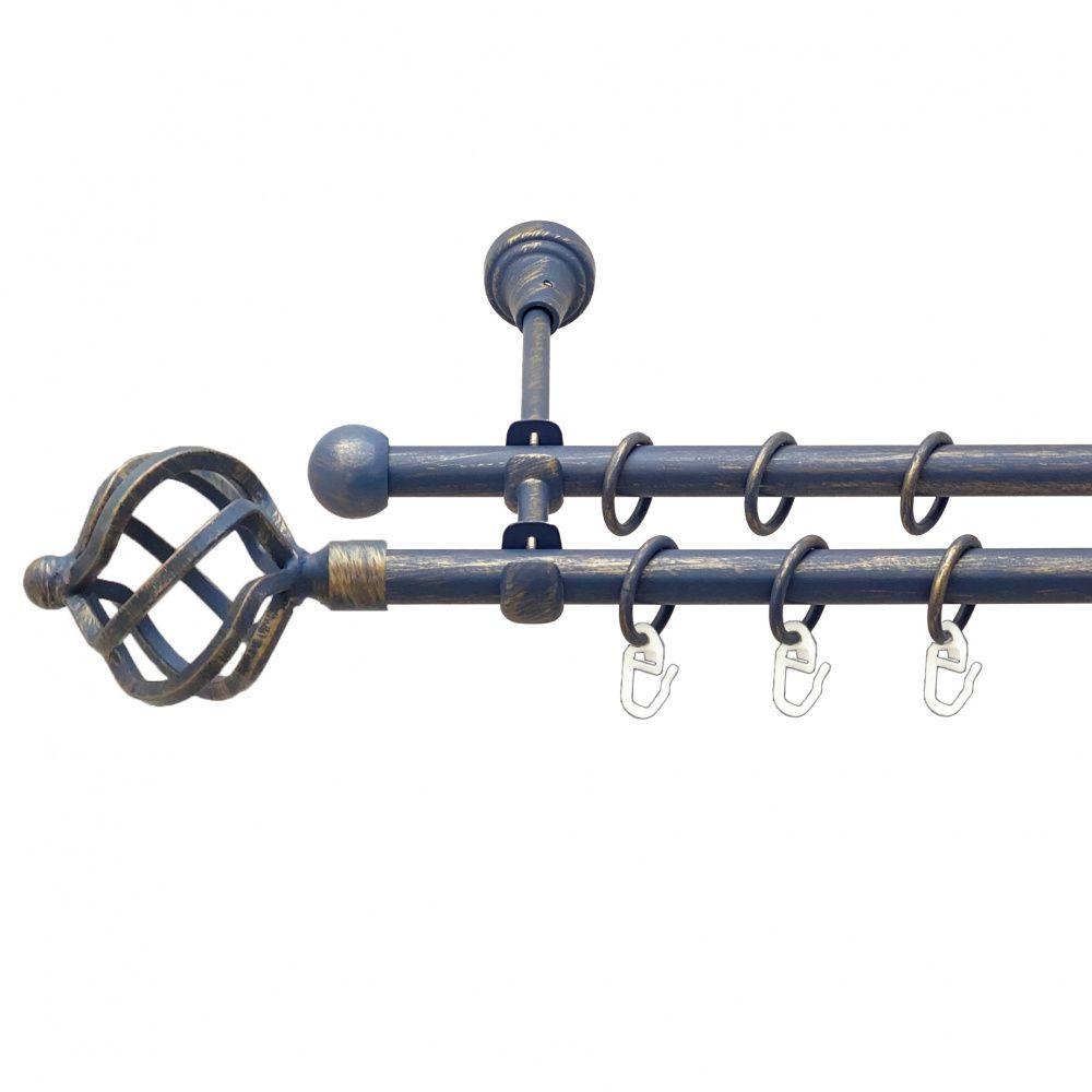 -20%Карниз Orvit Ажур металевий дворядний відкритий гладка труба кільце металеве Блакить Золота 16\16 мм 200 см (00-00015622)
