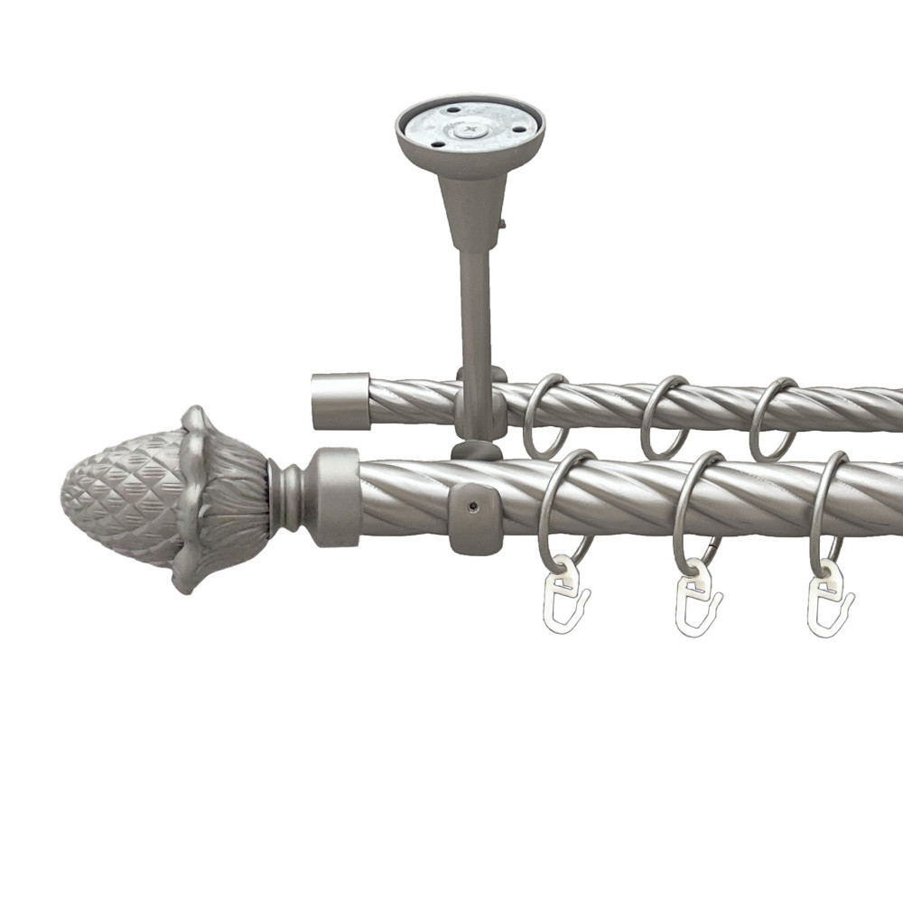 -20%Карниз Orvit Цинара металевий дворядний відкритий до стелі скручена труба кільце металеве Сатин 25\16 мм 240 см (00-00024160)
