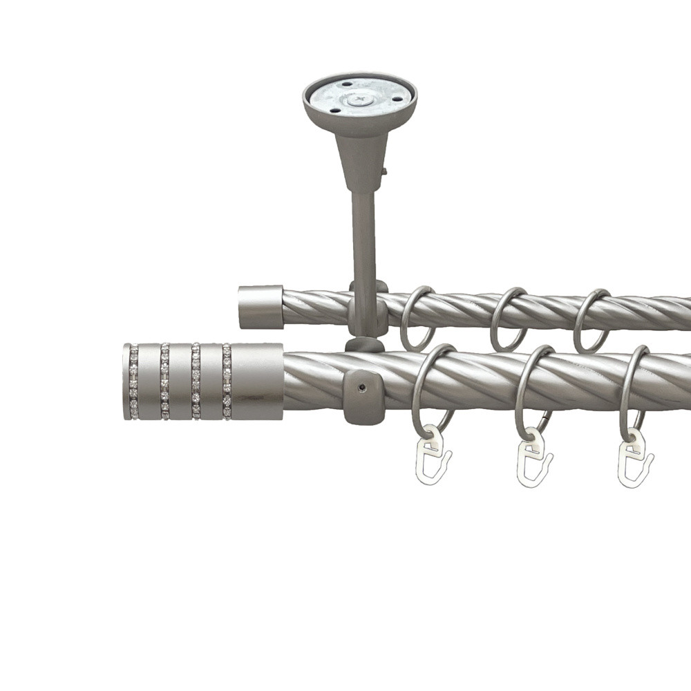-20%Карниз Orvit Барамелла металевий дворядний відкритий до стелі скручена труба кільце металеве Сатин 25\16 мм 240 см (00-00024068)