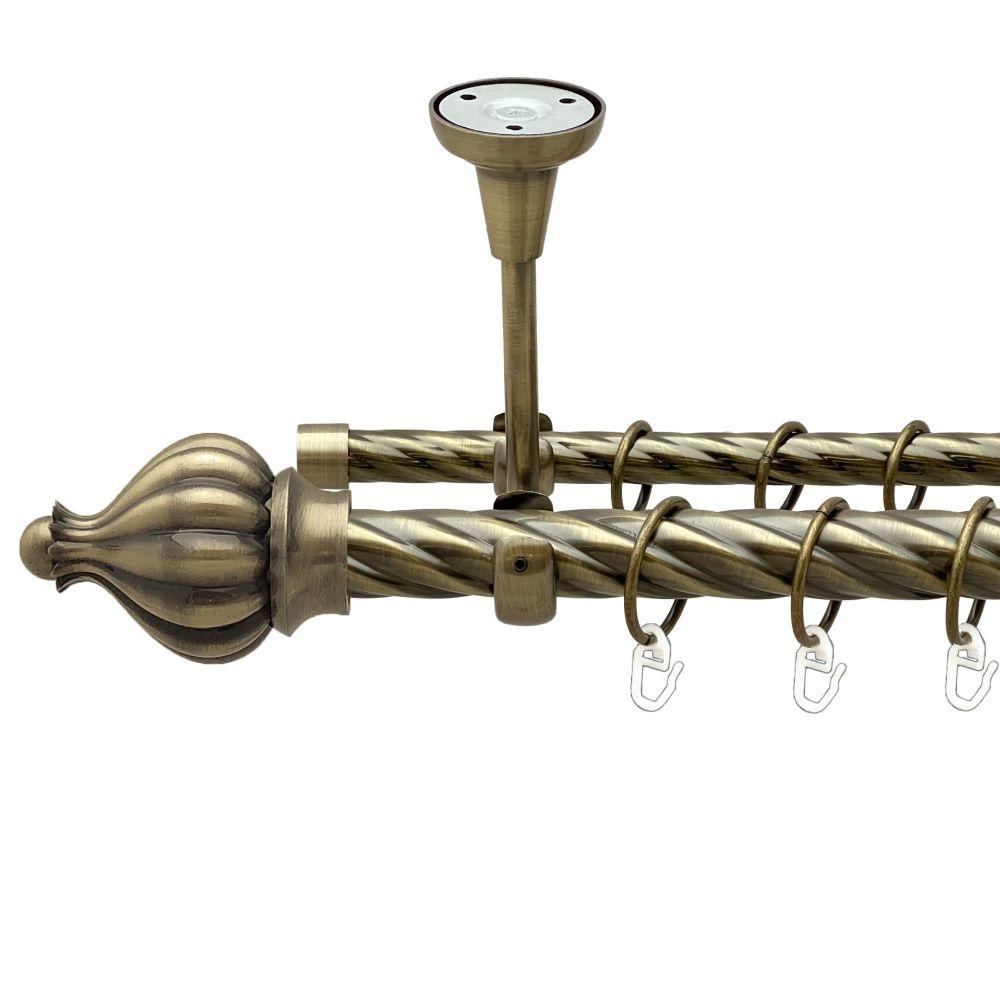 -20%Карниз Orvit Таджа металевий дворядний відкритий до стелі скручена труба кільце металеве Антик 25\16 мм 240 см (00-00019028)