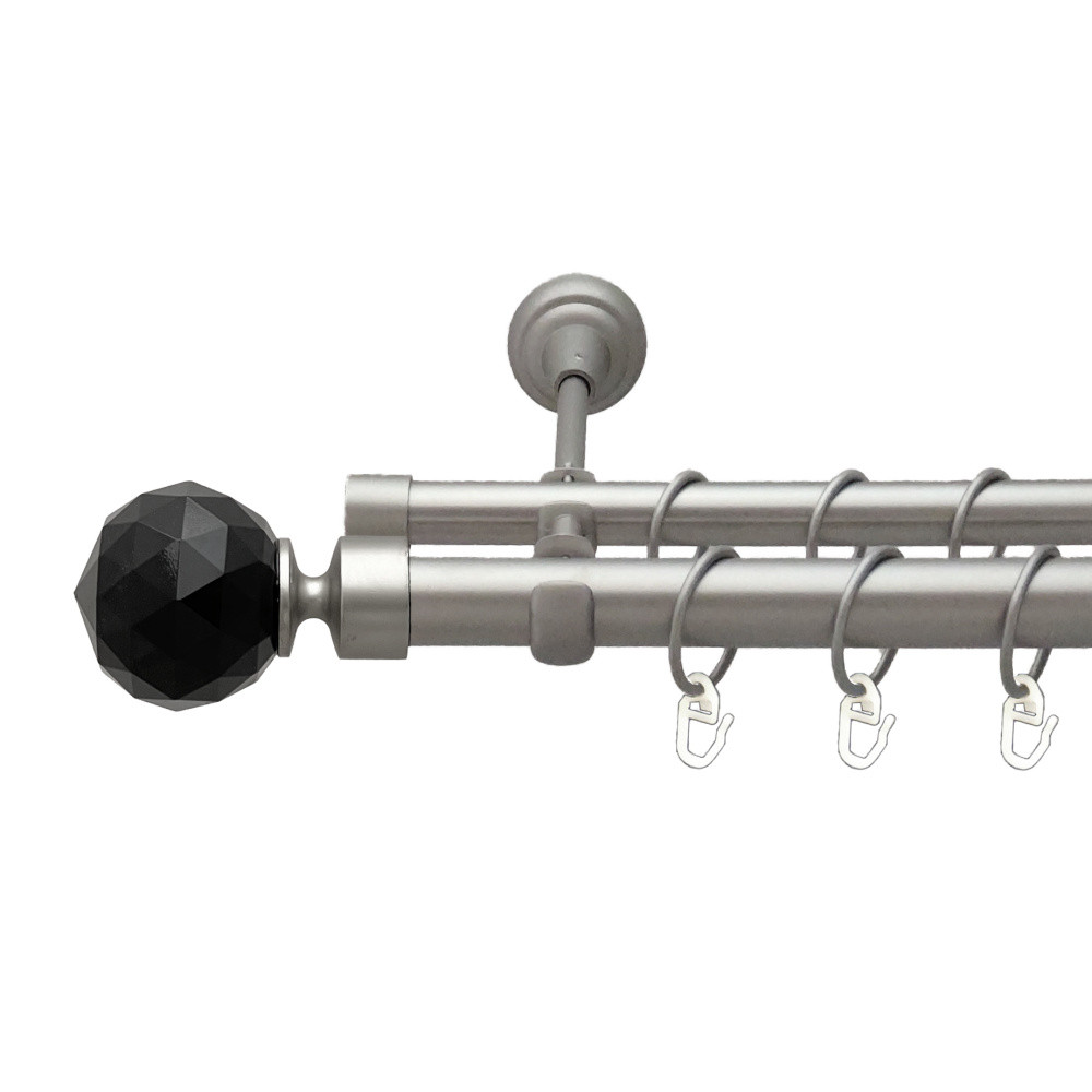 -20%Карниз Orvit Люміера Неро металевий дворядний відкритий гладка труба кільце металеве Сатин 25\19 мм 240 см (00-00023366)