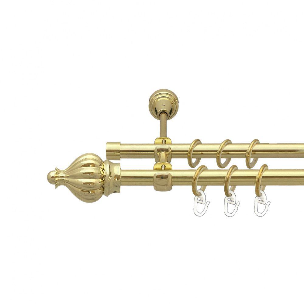 -20%Карниз Orvit Таджа металевий дворядний відкритий гладка труба кільце металеве Золото 16\16 мм 300 см (00-00014282)