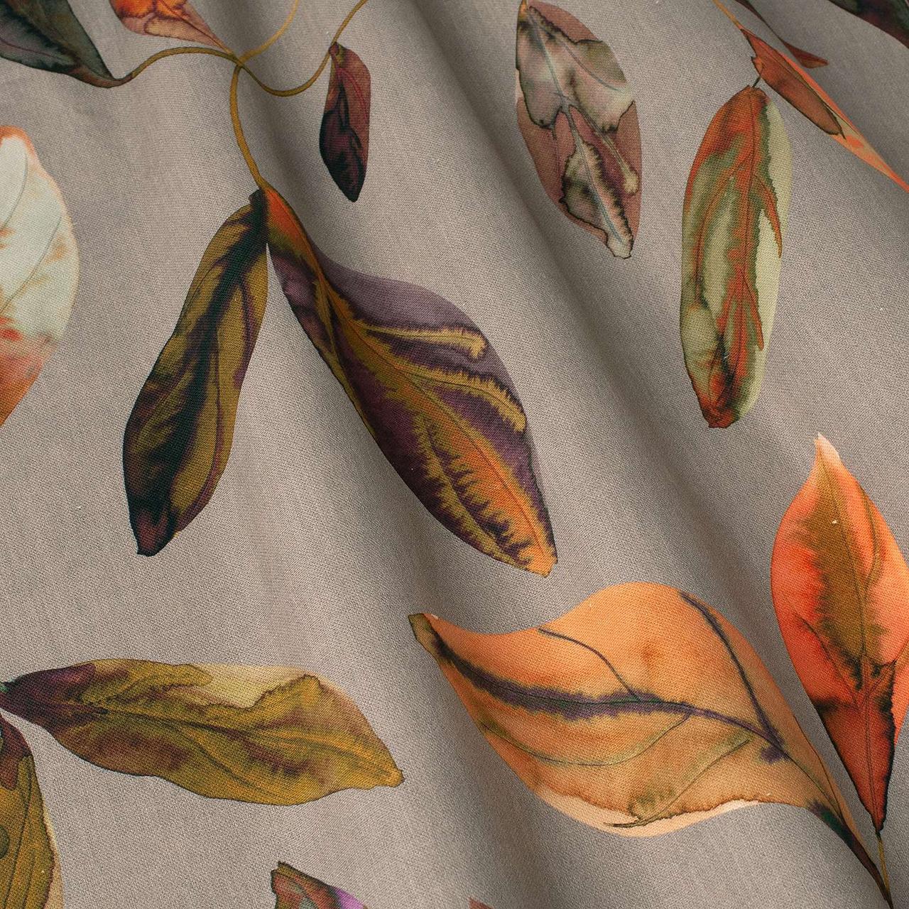 Декоративна тканина листя зелена коричнева та помаранчева на сірому фоні Іспанія 280см88261v8