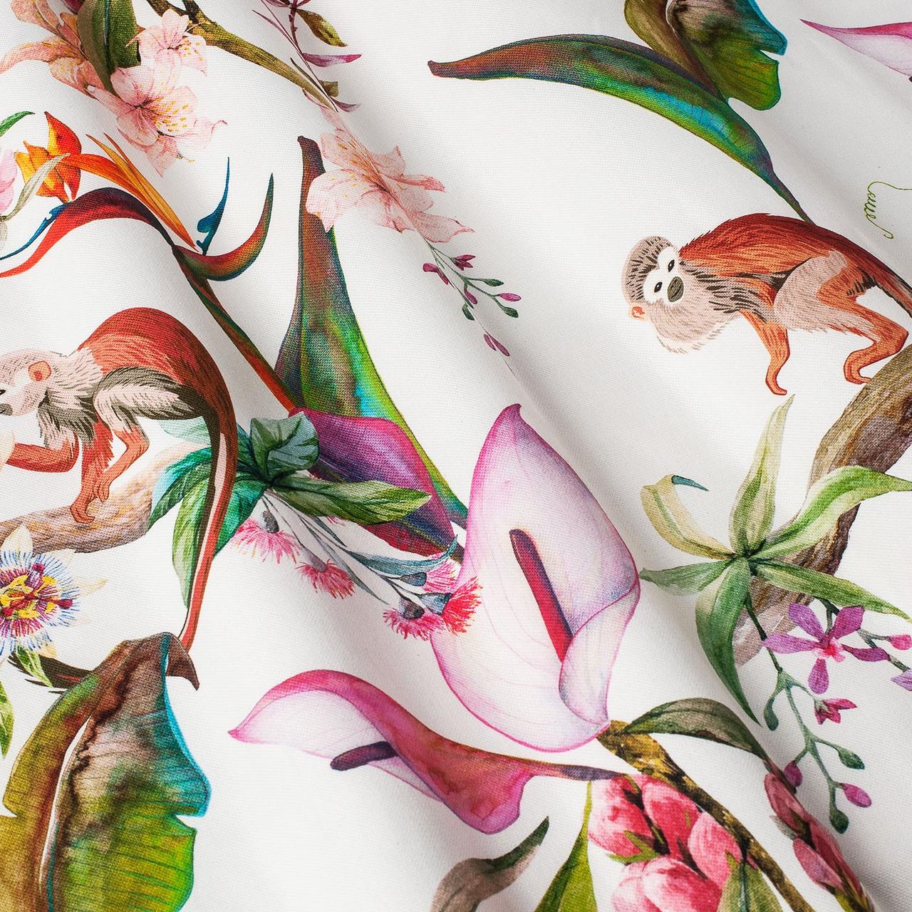 Показати оптові ціниДекоративні тканини червоні тварини і зелене листя на білому тлі Іспанія 87882v1