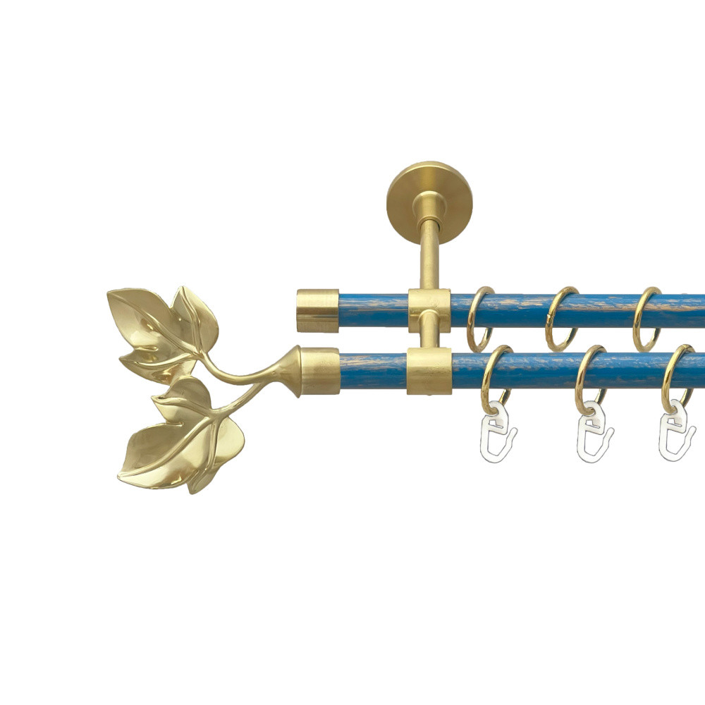 -20%Карниз Orvit Листок металевий дворядний закритий гладка труба кільце металеве Золото Матове - Блакить 16\16 мм 300 см