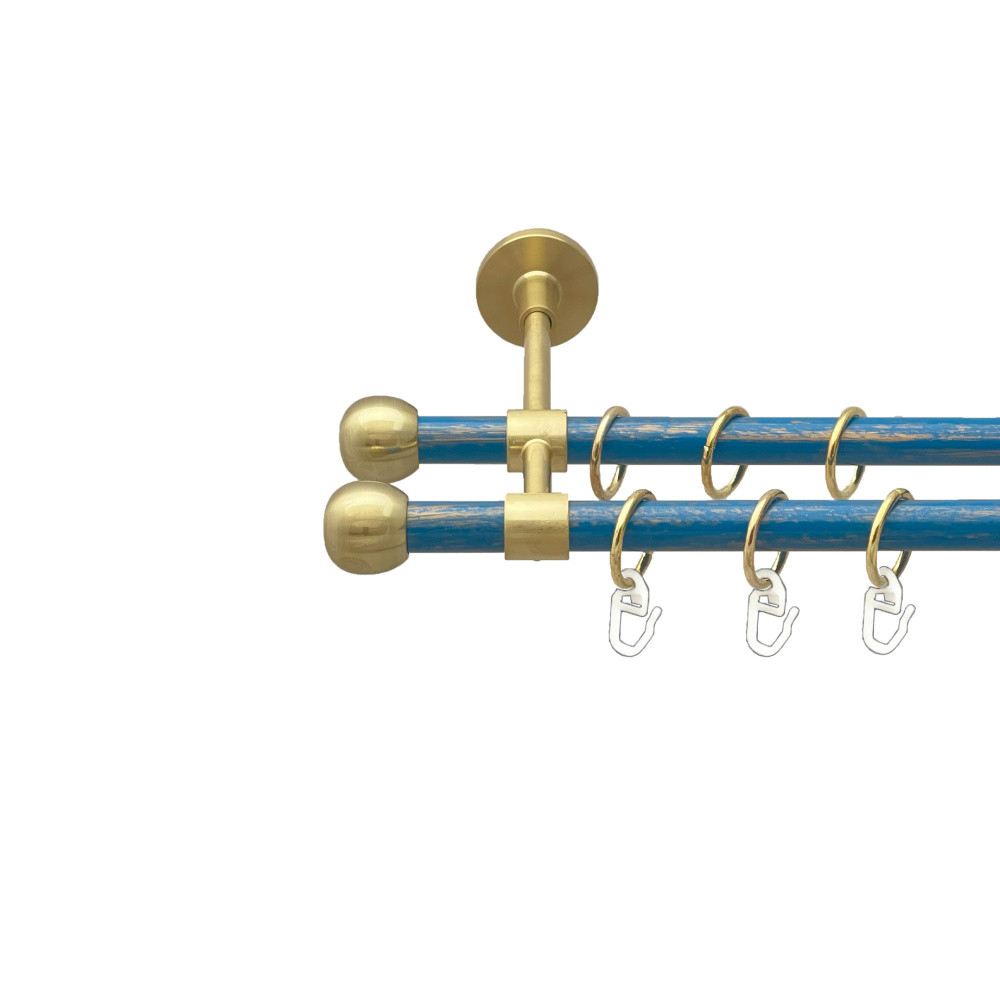 -20%Карниз Orvit Куля Болонь металевий дворядний закритий гладка труба кільце металеве Золото Матове - Блакить 16\16 мм 160 см