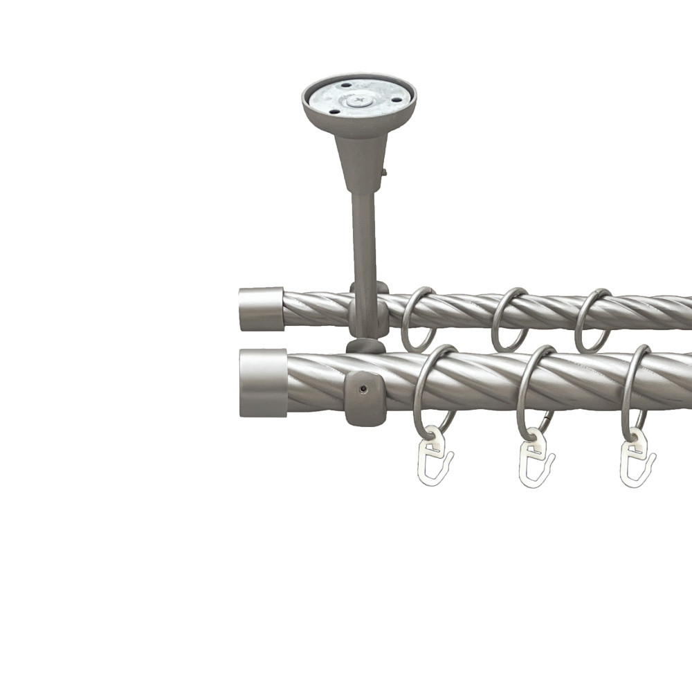 Показати оптові ціниКарниз Orvit Заглушка металевий дворядний відкритий до стелі скручена труба кільце металеве Сатин 25\16 мм 160 см (00-00026177)